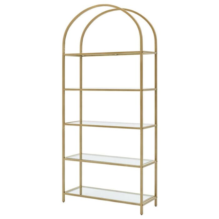 Hoppa! | Regal | 5 Ebenen, gehärtetes Glas, Metallstruktur, goldene Farbe, 73 x 30,2 x 183,5 cm (L x D x H)