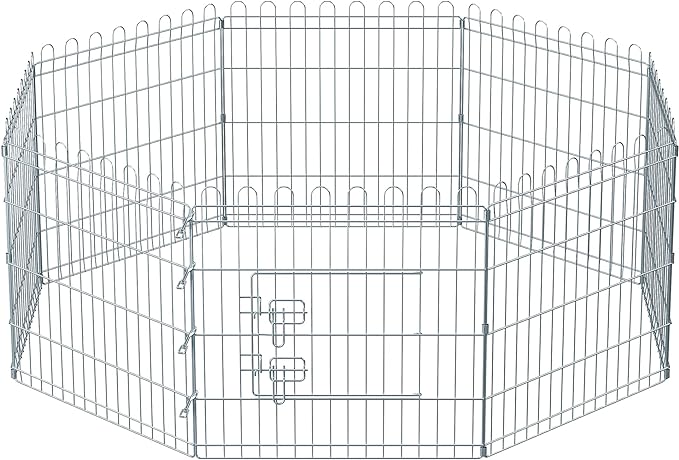 Die Hoppa! Puppy-Laufstall bietet eine perfekte Lösung für den Innen- und Außenbereich. Mit einem stabilen Griff für den Außenbereich und einem flachen Boden für eine stabile Positionierung im Innenbereich erfüllt dieses Gehäuse verschiedene Bedürfnisse. Maße und Material Das Gehäuse ist sorgfältig mit einer verzinkten Oberfläche hergestellt, was es schimmelbeständig und wetterbeständig macht. Das dichte Drahtgeflecht sorgt für einen Abstand von 3,5 cm zwischen den Drähten für zusätzliche Sicherheit. Funktionalität und Design Das Design mit doppelter Sicherung, ausgestattet mit zwei L-förmigen Türschlössern, verhindert, dass Haustiere die Tür öffnen können. Das gebogene Design an der Oberseite des Tierparks ohne Rippen gewährleistet zusätzliche Sicherheit. Verwendung und Anwendung Dieser Puppy-Laufstall von Hoppa! eignet sich ideal für die sichere Aufbewahrung von Haustieren sowohl drinnen als auch draußen. Einfach ohne Werkzeuge zu montieren, sofort einsatzbereit. Merkmale - Geeignet für den Innen- und Außenbereich - Einfach ohne Werkzeug montierbar - Doppeltes Sicherheitsdesign mit L-förmigen Türschlössern - Verzinkte Oberfläche für Schimmelbeständigkeit - Dichtes Drahtgeflecht für zusätzliche Sicherheit