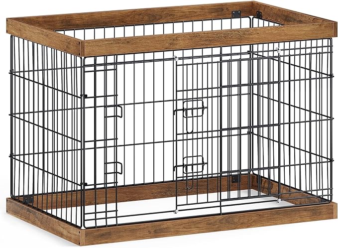 De veilige schuifdeur met 2 grendels voorkomt dat uw huisdier ontsnapt en de lage deurdrempel maakt het gemakkelijk toegankelijk voor uw huisdier. Het walnoot bruin-zwarte ontwerp voegt een stijlvolle uitstraling toe aan de omgeving.