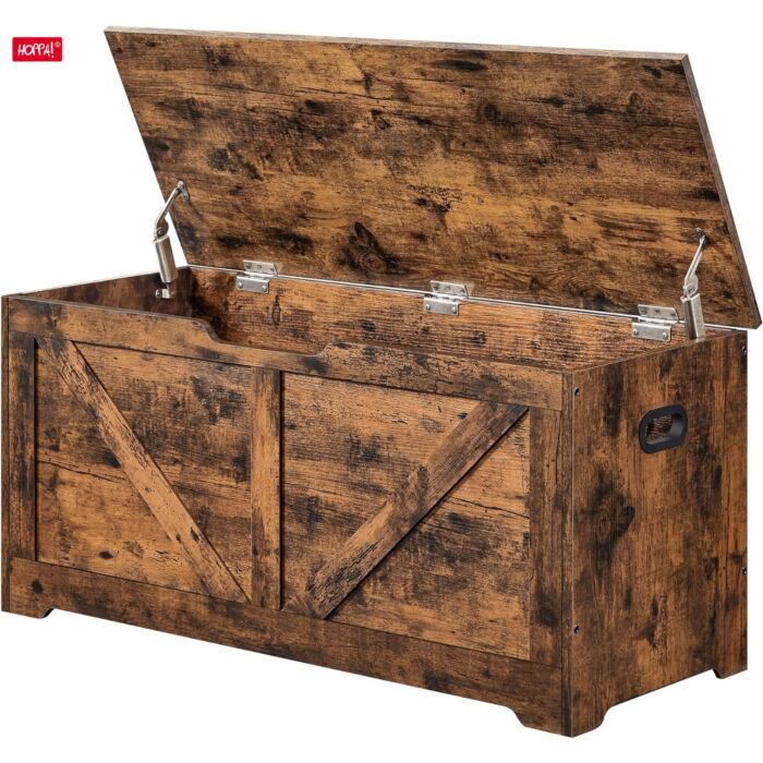 Die Hoppa! Schuhbank in Vintage Braun bietet nicht nur eine stilvolle Aufbewahrungslösung, sondern auch einen bequemen Sitzplatz. Mit Sicherheitsscharnieren ausgestattet, bietet sie Sicherheit und Komfort. Die Spanplatte sorgt für Langlebigkeit und Stabilität.