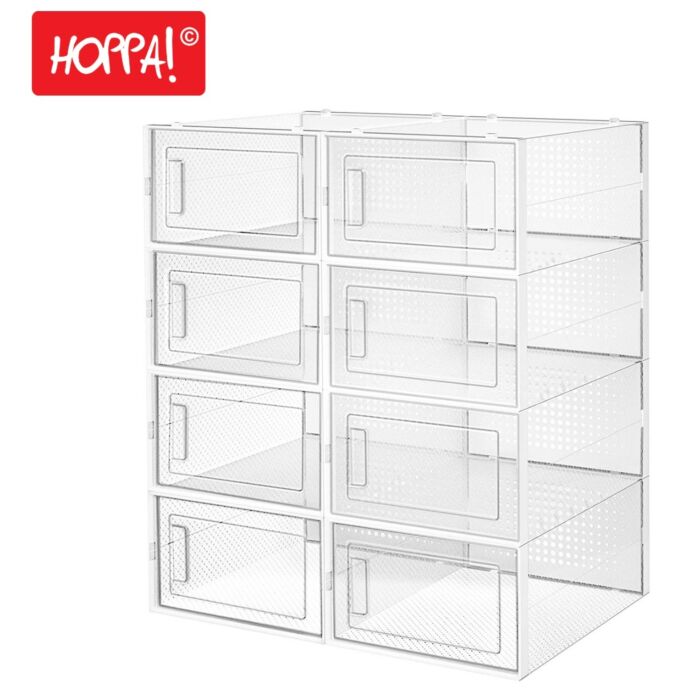 Hoppa! | Schuhkartons Set von 8 | Für Schuhe bis Größe 42 | Transparent Weiß