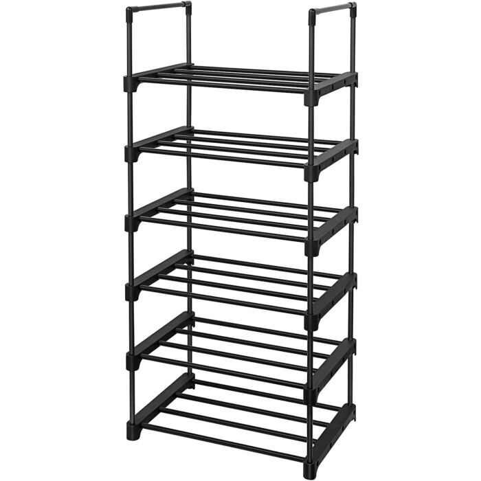 Hoppa! | Schuhregal | 6 Ablagen | Metall | Mehrzweck | 45 x 30 x 106 cm | Schwarz