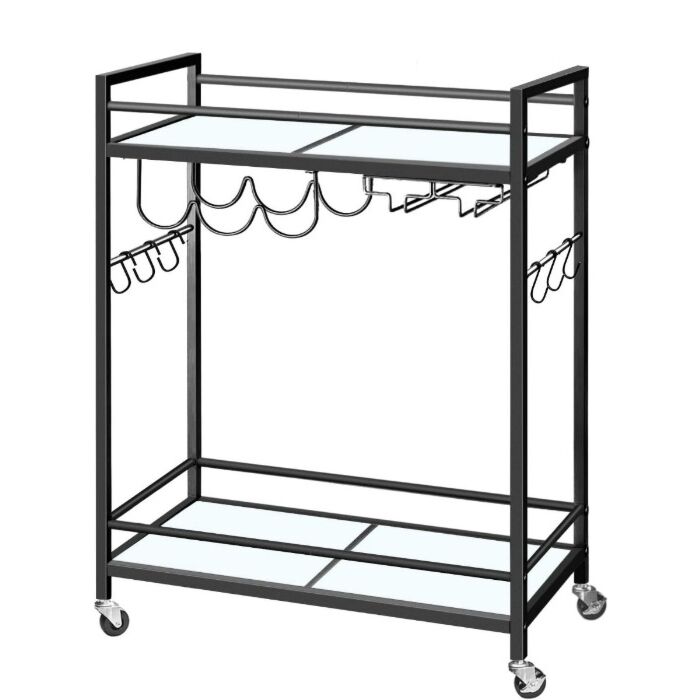 Dank seiner hohen Kapazität bietet der Wagen genügend Platz für bis zu 6 Gläser und mehrere Flaschen. Die drei Etagen ermöglichen eine praktische Anordnung Ihrer Getränke und Snacks, während der Wagen sich bei Bedarf leicht demontieren lässt. Ideal, um ihn nach dem Gebrauch platzsparend zu verstauen.