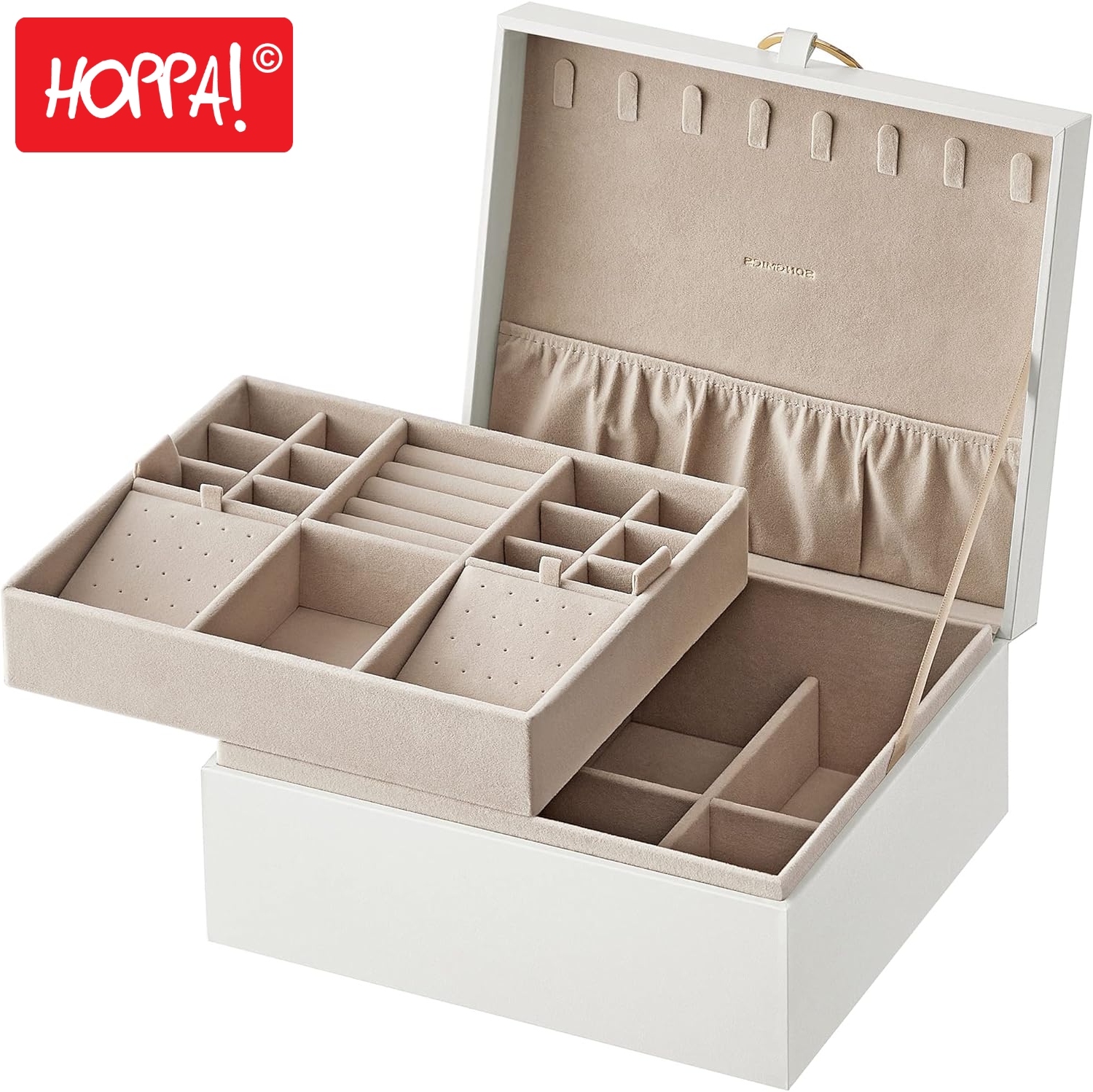 Hoppa! | Schmuckkasten 2 Ebenen | Griff, abnehmbares Schmuckregal, schwebender Effekt | 20,5 x 24 x 11 cm | Weiß