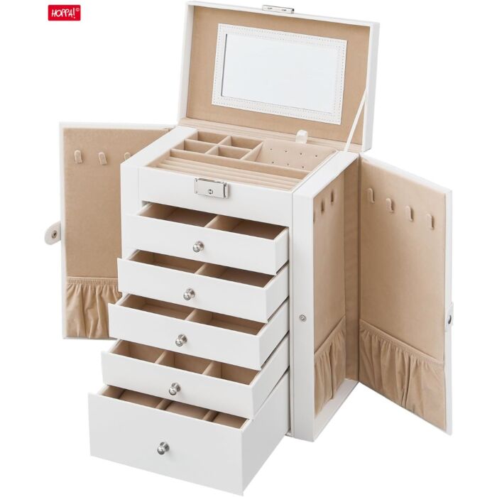 Hoppa! | Schmuckschatulle | 6-stöckig | Seitliche Flügeltüren | Schubladen | Spiegel & Schloss