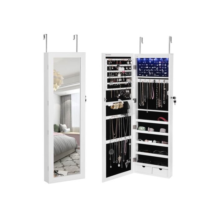 Hoppa! | Hängeschmuckschrank | abschließbarer Spiegelschrank, zahlreiche Fächer, Vintage, weiß