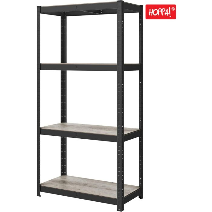 Das Hoppa! Magazijnstelling - Opbergrek ist ein vielseitiges Lagerregal mit einem rustikalen Look, der durch große Planken mit hübscher Holzmaserung besticht. Das Regal bietet eine praktische Ergänzung für jede Einrichtung. Es kann sowohl in der Küche als auch im Arbeitszimmer verwendet werden, um Gegenstände wie Mikrowellen, Toaster, Bücher, Blumentöpfe und Drucker zu verstauen. Maße und Material Das Regal hat die Maße 80x40x160 cm (Breite x Tiefe x Höhe) und ist in Grau und Schwarz gehalten. Funktionalität und Design Dank der verstellbaren Regalböden kann das Regal einfach montiert werden, ohne dass Schrauben benötigt werden. Die Teile lassen sich mühelos durch die vorhandenen Schlitze verbinden, und die Höhe zwischen den Regalböden kann individuell angepasst werden. Eine kippbare Sicherung für die Wandmontage ist im Lieferumfang enthalten, um eine sichere und stabile Umgebung zu gewährleisten. Verwendung und Anwendung Dieses praktische Opbergrek bietet flexible Verwendungsmöglichkeiten in verschiedenen Räumen des Hauses. Sei es in der Küche für Küchenutensilien oder im Arbeitszimmer für Bücher und Bürobedarf, dieses Regalsystem ist eine ideale Lösung zur Organisation von Gegenständen. Merkmale - Rustikaler Look mit großen Planken - Flexibel in der Anwendung; für verschiedene Räume geeignet - Verstellbare Regalböden ohne Schraubenmontage - Inklusive kippbarer Wandmontagesicherung
