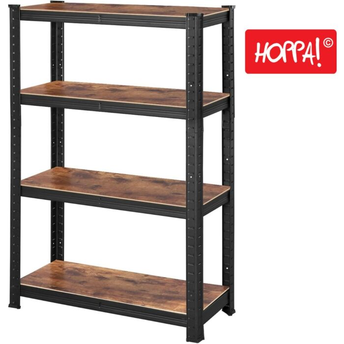 Hoppa! Magazijnstelling - Opbergrek - 80x40x160 cm - Belastbaar tot 520 kg - Bruin/Zwart