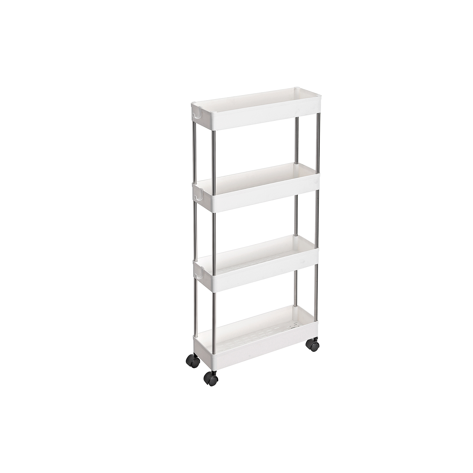 Das platzsparende Design und die Rollen machen diesen Wagen ideal für kleine Räume. Die 4 Etagen bieten ausreichend Stauraum für Küchenutensilien, Badezimmerartikel und vieles mehr. Die weiße Farbe passt zu verschiedenen Einrichtungsstilen.