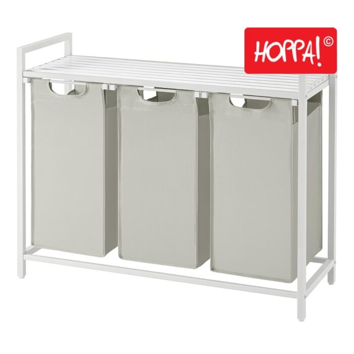 Hoppa! | Wasmand 3 vakken | Met plank | Waszak uitneembaar | 3x38 liter