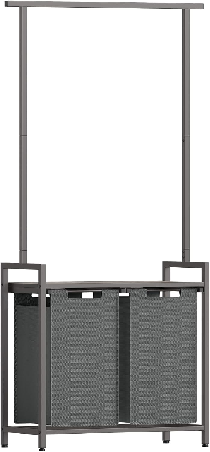 Hoppa! | Wäschekorb | Doppel 46 l | Mit Kleiderstange & Tablett | Grau und Schiefergrau