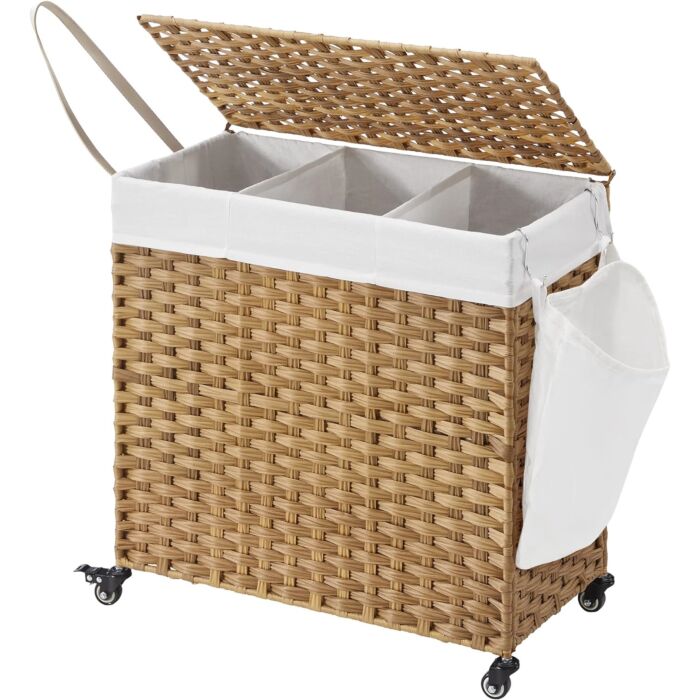 Mit drei Fächern zur einfachen Wäschesortierung und einer herausnehmbaren Einlage ist dieser Wäschekorb eine praktische Lösung für Ihr Zuhause. Die 140-l-Kapazität ermöglicht es Ihnen, Ihre Wäsche reibungslos zu organisieren und zu transportieren.