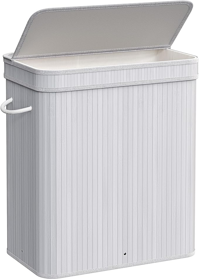 Die Hoppa! Wasmand aus Bambus mit einem Fassungsvermögen von 100 Litern ist die ideale Lösung für die Aufbewahrung von schmutziger Wäsche. Mit Abmessungen von 54,5 x 34,5 x 61 cm bietet diese große Wäschekorb viel Platz für die Wäsche eines gesamten Haushalts für eine ganze Woche.