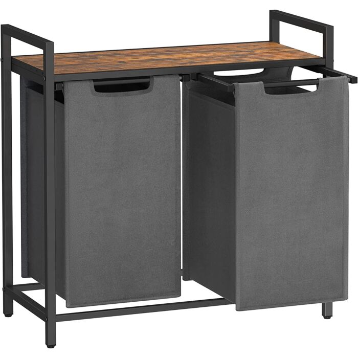 Das Vintage-Design in Braun und Schwarz verleiht diesem Wäschekorb einen rustikalen Charme, der zu verschiedenen Wohnstilen passt. Die 2 Fächer bieten ausreichend Platz für die Wäscheorganisation, während die Ablage und der Klettverschluss zusätzliche Funktionalität bieten.