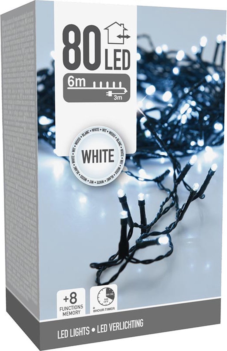 DSS | LED Lichtsnoer | 80 LEDs - 6m - Weiß - Timer - 8 Lichtfunktionen