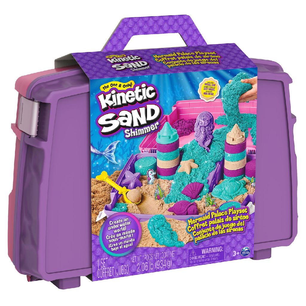 Entdecken Sie die faszinierende Welt der Meerjungfrauen mit dem Kinetic Sand Mermaid Palace Playset, das speziell entwickelt wurde, um die kreativen Fähigkeiten und die Fantasie von Kindern ab 3 Jahren zu fördern. Dieses Spielset überzeugt mit 907 Gramm kinetischem Sand, darunter schimmernder blaugrüner, neonvioletter und Strandsand, der für ein unvergessliches Spielerlebnis sorgt.