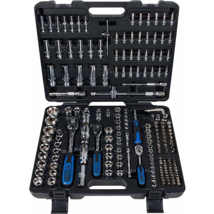 Das KS Tools Dopsleutelset ist eine erstklassige Auswahl für jeden Mechaniker, sowohl für den professionellen als auch für den Hobbynutzer. Mit insgesamt 195 Teilen bietet dieses Set alles, was Sie für eine Vielzahl von Anwendungen benötigen, sei es zum Anziehen von Schrauben oder zum Lösen von Muttern. Die enthaltenen Größen sind optimal auf den professionellen Bedarf abgestimmt, denn es sind die gängigen Größen 1/4, 3/8 und 1/2 Zoll integriert.