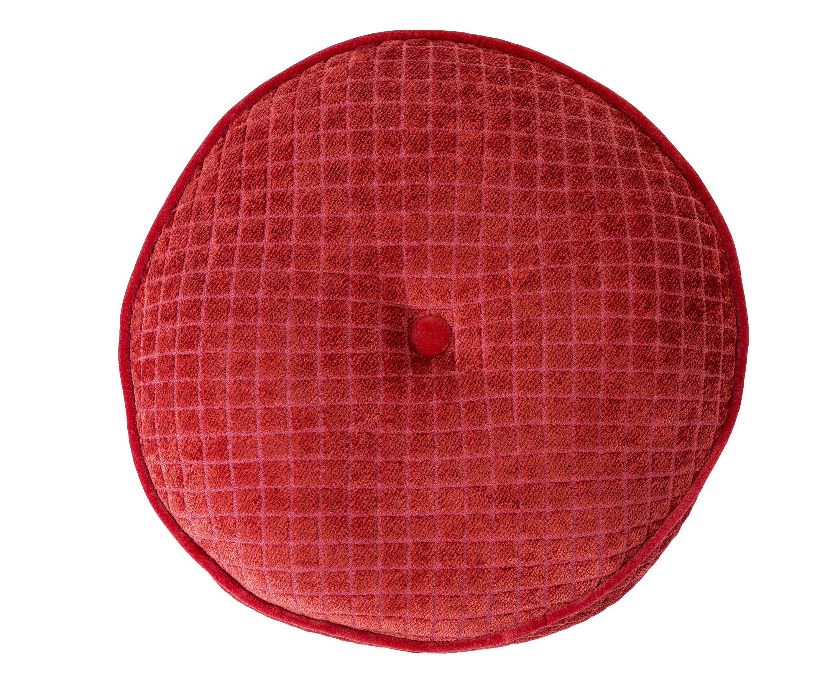 Das Kissen hat einen Durchmesser von 40 cm und ist aus hochwertigem Stoff in leuchtendem Rosa gefertigt.