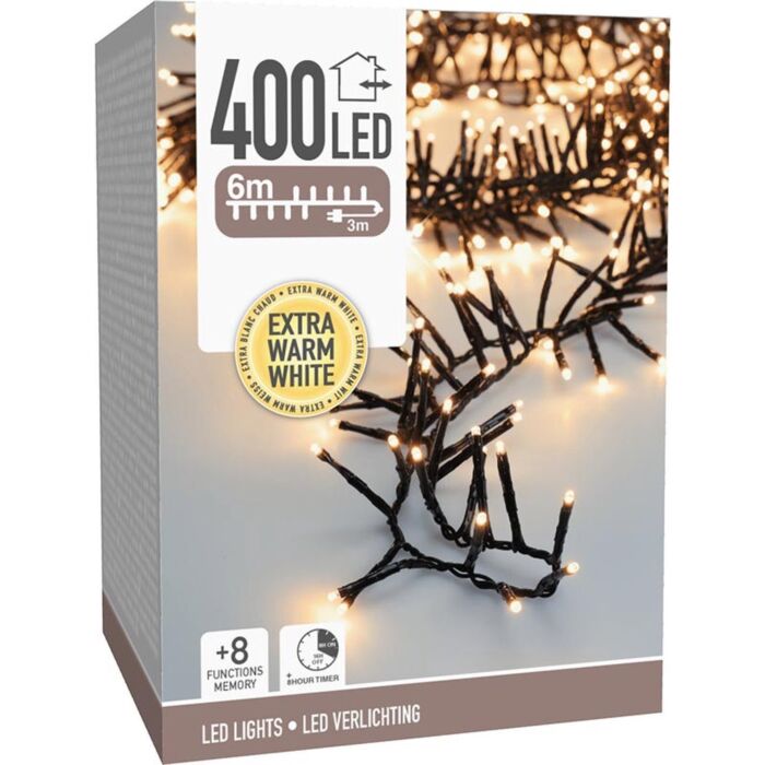 Maxi Cluster | Kerstverlichting | 400 LED's - Extra warm weiß - 8 Lichtfunktionen
