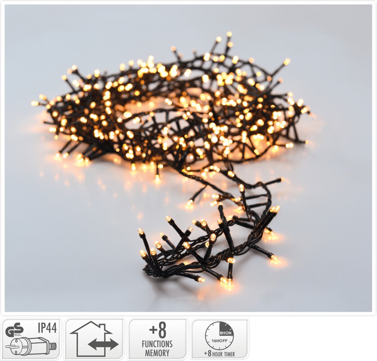 Microcluster | LED Weihnachtsbeleuchtung | 400 Lampen - Extra Warm Weiß - Timer - 8 Lichtfunktionen