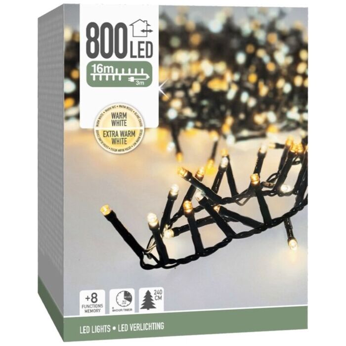 Kerstverlichting van 16 meter met 800 LED lampjes, geschikt voor een kerstboom van 240 cm, voor binnen en buiten gebruik.