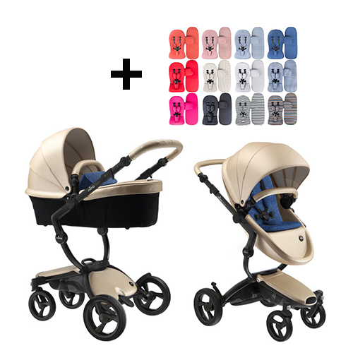 Mima Xari Kinderwagen | Frame - Black | Zitting + Kap - Champagne | Starter Pack - Denim Blue