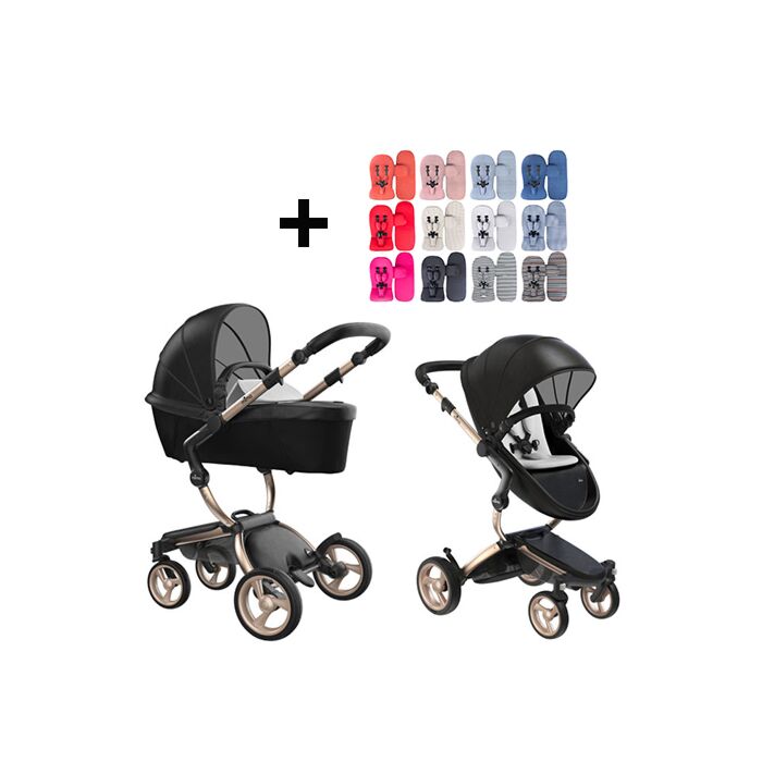 Mima Xari Kinderwagen | Frame - Champagne | Zitting + Kap - Black | Starter Pack - Stone White