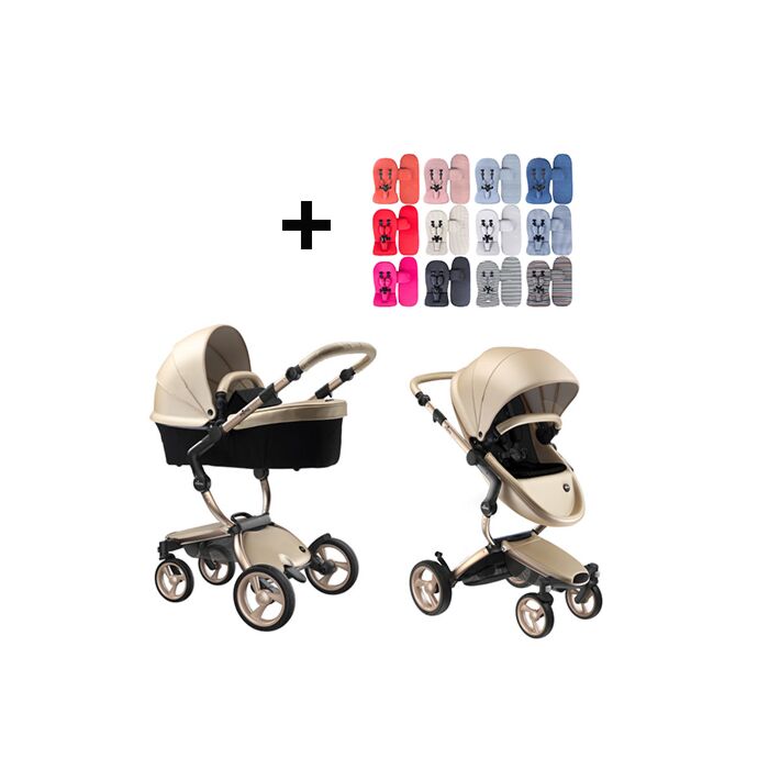 Mima Xari Kinderwagen | Frame - Champagne | Zitting + Kap - Champagne | Starter Pack - Black