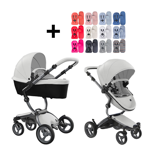 Mima Xari Kinderwagen | Frame - Graphite Grey | Zitting + Kap - Snow White | Starter Pack - Black & White