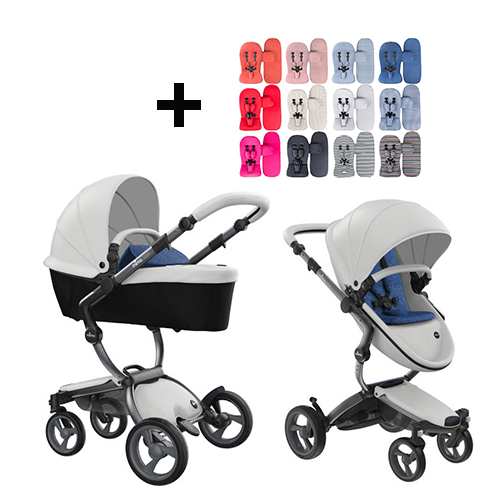 Mima Xari Kinderwagen | Frame - Graphite Grey | Zitting + Kap - Snow White | Starter Pack - Denim Blue
