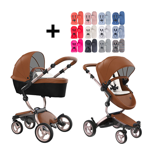 Mima Xari Kinderwagen | Frame - Rose Gold | Zitting + Kap - Camel | Starter Pack - Sandy Beige