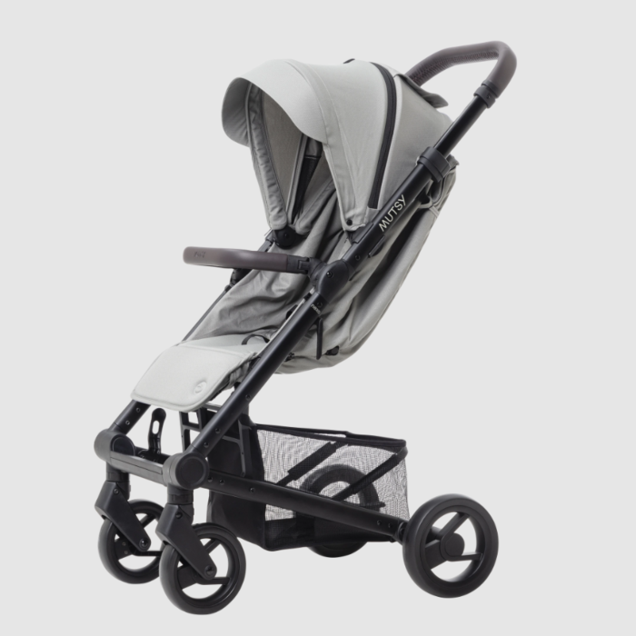 Mutsy Nexo-kinderwagen | Betonmelange | Zwart frame | Cognac-detail