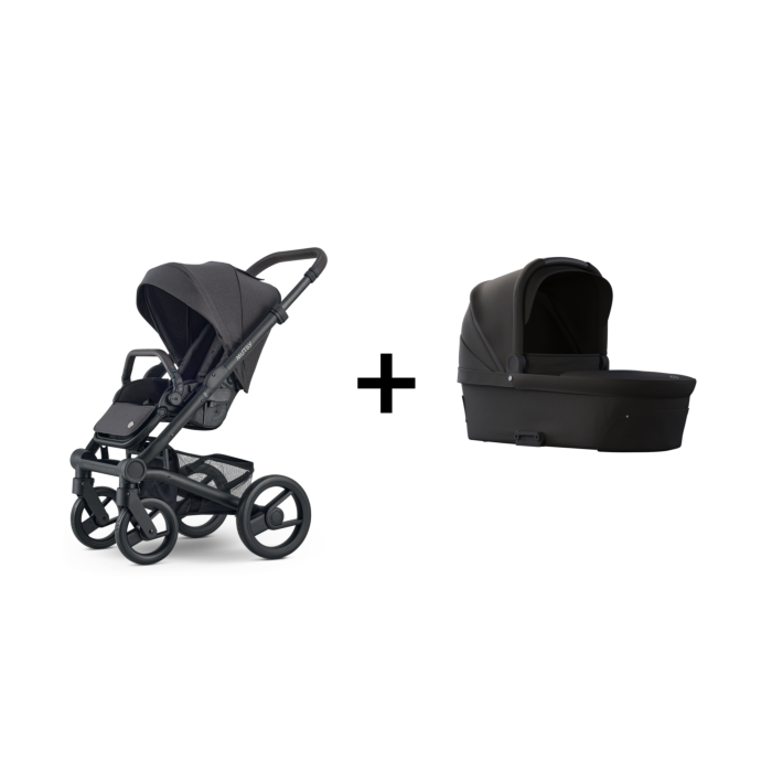 Mutsy Nio | Kinderwagen + Reiswieg | Schwarz mit schwarzem Rahmen
