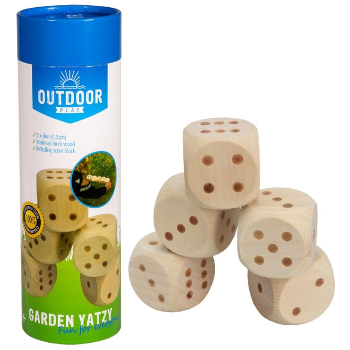 Spielen Sie die besten Würfelspiele im Garten mit dem Outdoor Play Mega Würfel (0601006). Dieses Spielset besteht aus 5 Holzwürfeln mit je 5,5 x 5,5 x 5,5 cm und einem Punktebuch, verpackt in einer vollfarbigen Tube mit einem umfangreichen Handbuch für verschiedene Spiele.