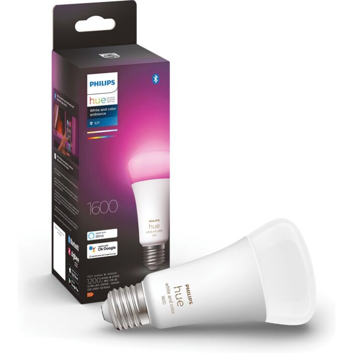 Die Philips Hue LED Lampe E27 ist die perfekte Wahl für ein flexibles und modernes Beleuchtungssystem in Ihrem Zuhause. Mit einer hohen Helligkeit von 1600 Lumen und der Möglichkeit, sowohl weißes Licht als auch Farblicht zu erzeugen, schafft diese Lampe die optimale Atmosphäre für jede Gelegenheit. Sie ist ideal für entspannende Abende oder produktive Arbeitsstunden.