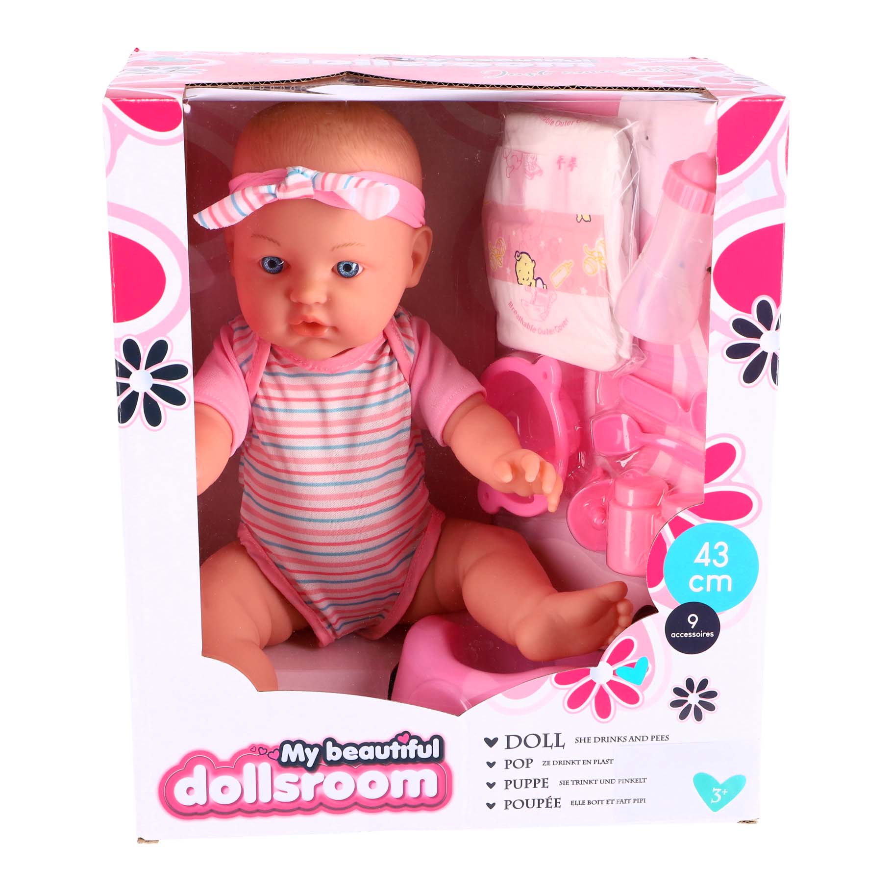Puppe | 43 cm | Trinken & Pinkeln | 9 Zubehörteile