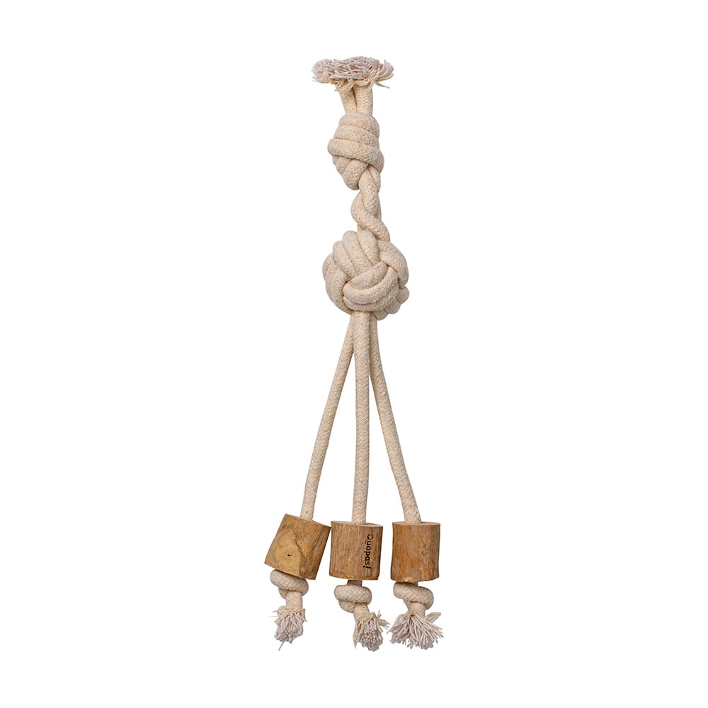 Das Quapas! Coffeewood Triple Spielzeug eignet sich hervorragend zum Kauen und Spielen. Es ist nicht nur gut für die Zähne, sondern unterstützt auch die Verdauung IhresHundes, indem es die Kaumuskulatur aktiviert. Das Design des Spielzeugs mit einem Knoten im Seil ermöglicht es Ihrem Hund, das Spielzeug einfach zu halten und sicher zu spielen. Zudem splittert das Material nicht, was zusätzliche Sicherheit bietet.