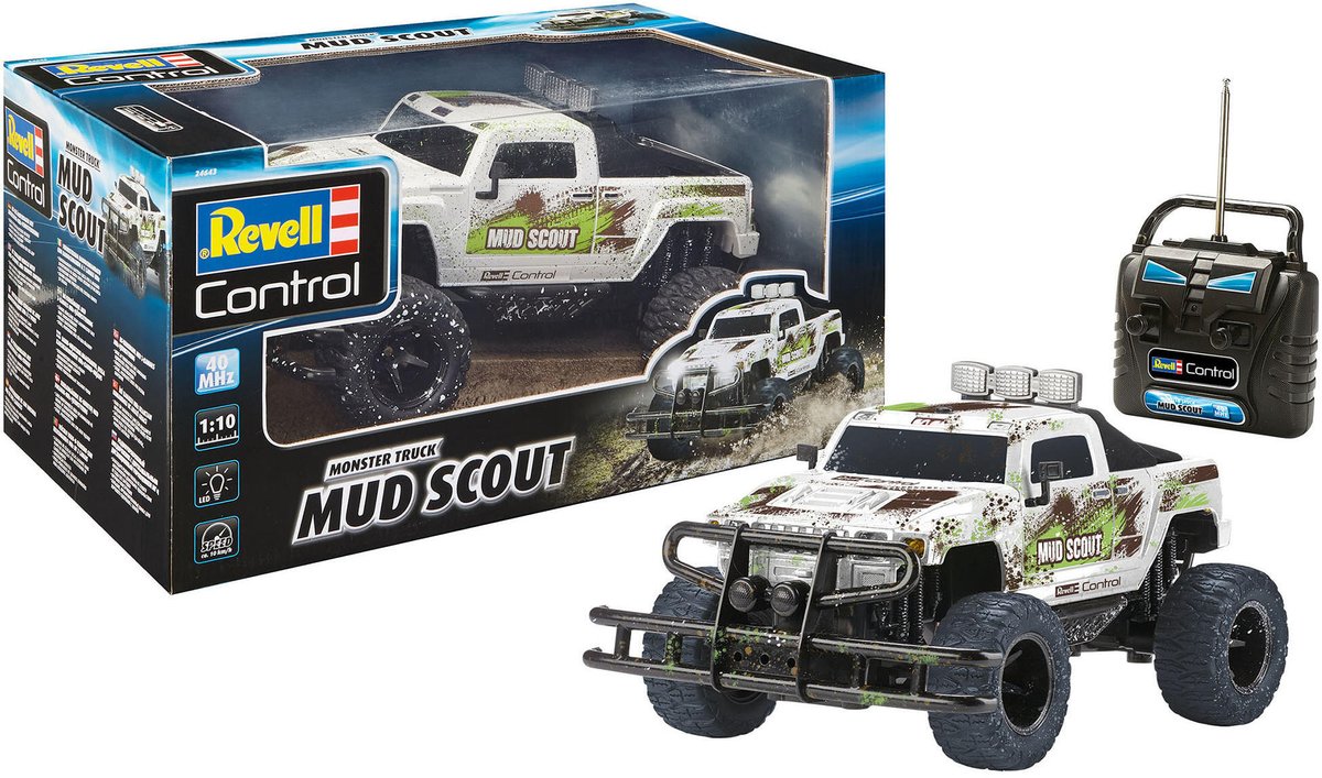 Der Revell RC Monster Truck Mud Scout (804365) ist das ideale Fahrzeug für Offroad-Abenteuer und bietet eine aufregende RC-Erfahrung für Groß und Klein. Mit seinem robusten Design und dem leistungsstarken 4WD-Antrieb ist dieser Monster Truck für jede Herausforderung im Gelände gewappnet und bringt jede Menge Spaß beim Fahren auf unterschiedlichen Oberflächen.