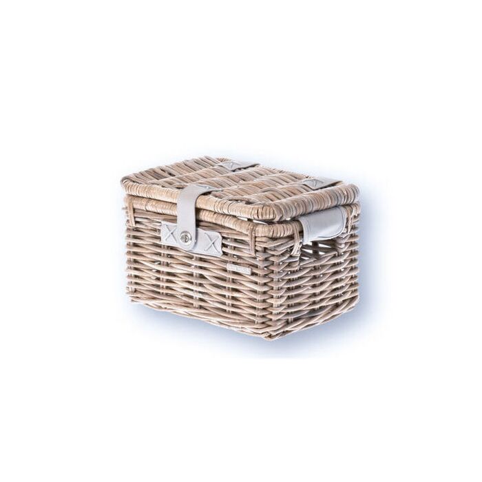Basil | Rotan fietsmand | Luxe uitstraling, deksel met sluiting, nature grey