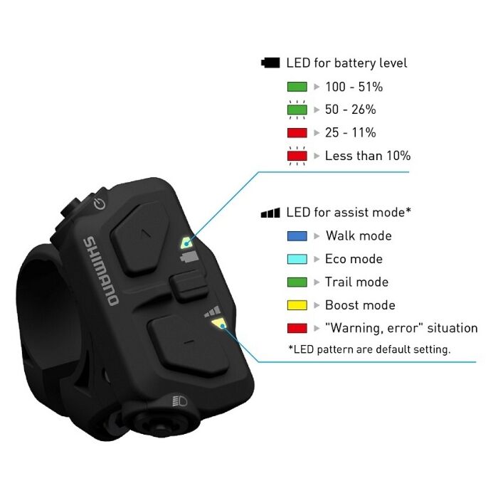 Die Shimano STEPS SW-EN600-L Schakeleenheid (links) bietet eine intuitive Lösung zur Steuerung Ihrer E-Bike-Unterstützung. Dank der praktischen An- und Aus-Taste sowie der Unterstützungsmodusänderung wird das Fahren mit Ihrem Shimano STEPS E-Bike angenehmer und einfacher. Entwickelt für alle E-Bike-Kategorien, ist diese Schakeleenheid die perfekte Ergänzung zu Ihrem E-Bike, um den Fahrkomfort zu erhöhen.