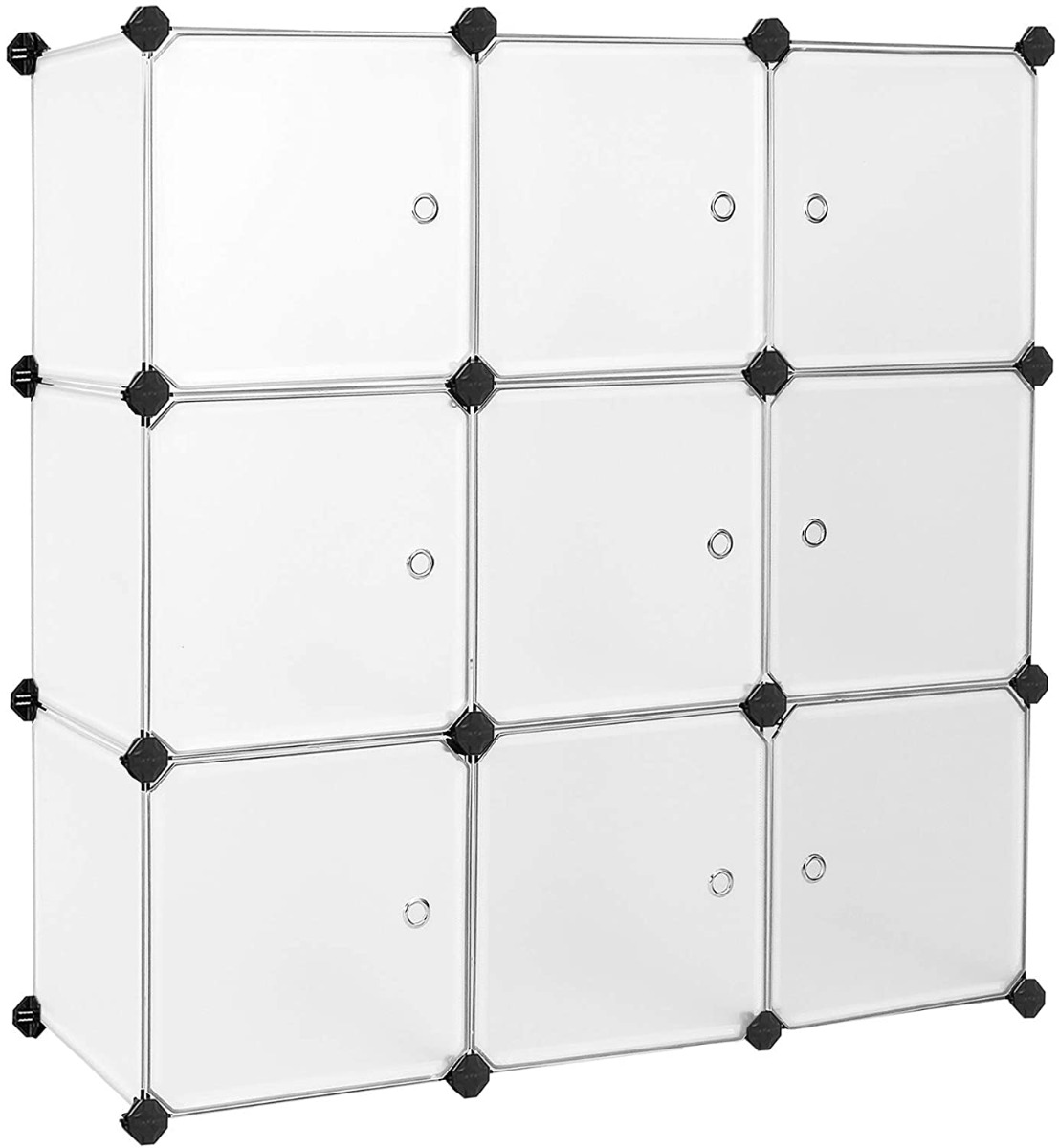 Das Hoppa! Badezimmerregal mit 9 Fächern in Weiß aus einer Metall-Kunststoff-Kombination bietet vielseitige Aufbewahrungsmöglichkeiten. Die Montage dieses Regals ist ein Kinderspiel und erfordert nur 30 Minuten Ihrer Zeit. Das modulare Design ermöglicht es Ihnen, die Form des Regals ganz nach Ihren Wünschen anzupassen - sei es quadratisch, rechteckig oder sogar leiterförmig. Jedes Fach verfügt über eine Tür, die diskrete Aufbewahrung ermöglicht, mit Haken zum sicheren Verschließen.
