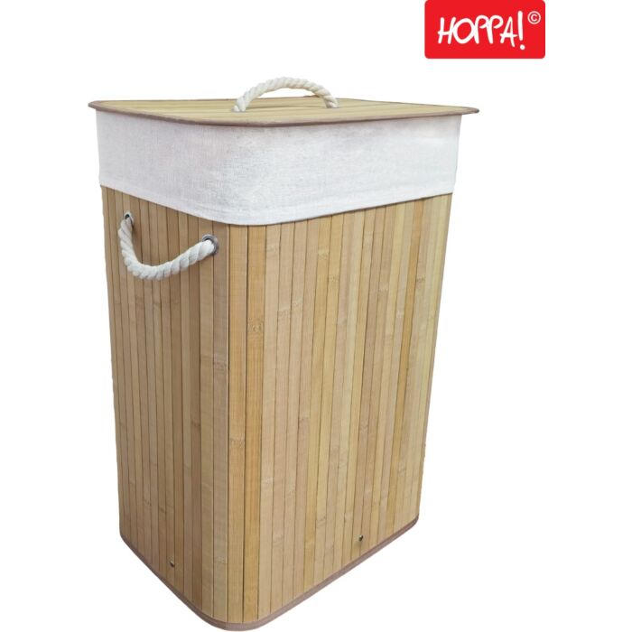 Ein Korb aus Bambusholz verleiht Ihrem Raum ein weiches, natürliches Aussehen und ein wohnliches Gefühl im Gegensatz zu Kunststoff. Dieser Hoppa! Bambus-Wäschekorb in der natürlichen Bambusfarbe wird mit einem herausnehmbaren Innenbeutel aus Baumwolle geliefert, der sowohl Benutzerfreundlichkeit als auch Hygiene bietet. Dieser faltbare Korb wird flach verpackt und ist leicht selbst zusammenzubauen.
