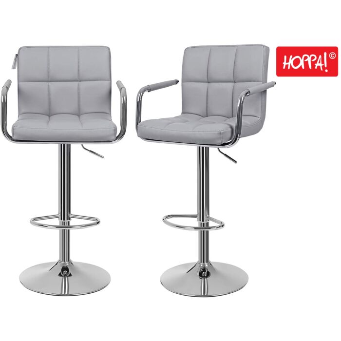 Hoppa! | Barhocker 2er-Set | Grau - Metall/Kunstleder