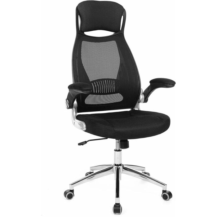 Die gepolsterten Armlehnen mit Netzbespannung lassen sich nach hinten klappen und bieten Schulterentlastung. Die stufenlos verstellbare Sitzhöhe von 45-54,5 cm und die stabile Wippmechanik sorgen für entspanntes Arbeiten. Der Bürostuhl ist für eine maximale Körpergröße von 175 cm geeignet.