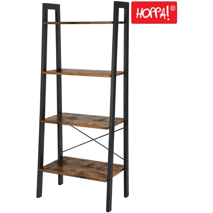 Der Hoppa! Industrial Wandschrank ist ein prägnantes Möbelstück aus stabilem Stahl in mattschwarz und robusten Dielen im Vintage-Look. Diese elegante Kombination verleiht dem Bücherregal einen individuellen Charakter, bemerkenswerte Widerstandsfähigkeit und eine Belastbarkeit von bis zu 5 kg pro Ebene. Die nach oben schmaler werdenden Stufen bieten viel Raum für kreative Gestaltungsmöglichkeiten wie Grünpflanzen, Bücher, Dekorationen und Fotorahmen.