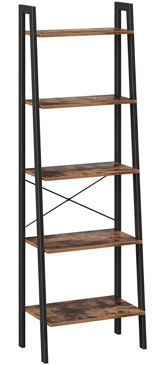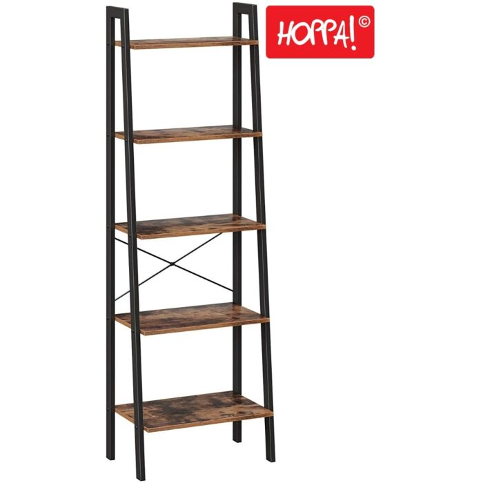 Hoppa! | Leiterschrank 5 Ebenen | Braun/Schwarz - Metall - 56 x 32 x 170 cm (L x D x H)