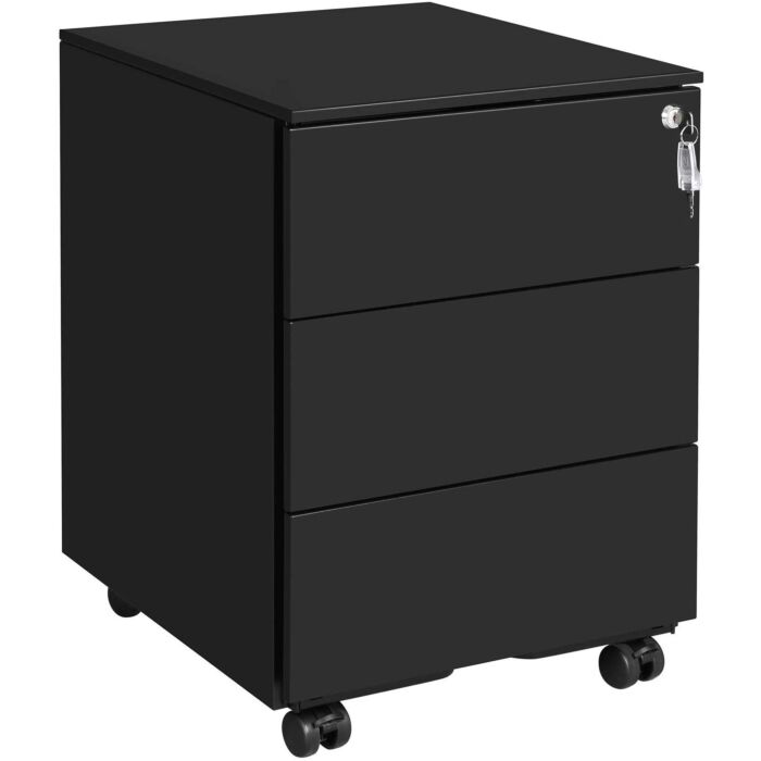 Hoppa! | Rollcontainer | Abschließbar - 3 Schubladen - Organizer - 39x45x55 cm - Mattschwarz