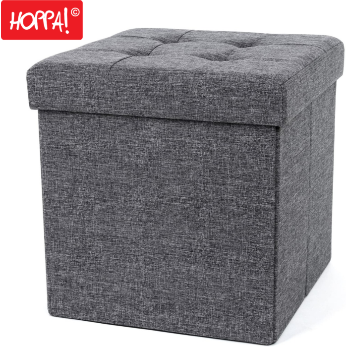 Der Hoppa! Hocker mit Stauraum in Grau ist ein kompaktes und dennoch stabil konstruiertes Möbelstück aus hochwertigen MDF-Platten. Mit Abmessungen von 38 x 38 x 38 cm und einer max. statischen Belastbarkeit von 300 kg bietet dieser Hocker nicht nur Stabilität, sondern auch Vielseitigkeit in der Verwendung. Der 2,5 cm dicke Schaumstoffbezug garantiert Gemütlichkeit, während der atmungsaktive dunkelgraue Leinenimitat-Bezug ein angenehmes Sitzgefühl vermittelt. Die klassische Farbe und das elegante Design machen diesen Hocker zu einem stilvollen Element in jedem Raum. Mit 40 Litern Stauraum bietet diese Aufbewahrungsbox Platz für Bücher, Kleidung und mehr. Bei Nichtgebrauch kann die Box einfach zusammengeklappt und platzsparend verstaut werden. Vom zusätzlichen Sitzplatz im Wohnzimmer über eine Aufbewahrungsbox im Kinderzimmer bis hin zum Nachttisch-Ersatz im Schlafzimmer – dieser Hocker ist ein echtes Multitalent, das Eleganz und Funktionalität vereint.