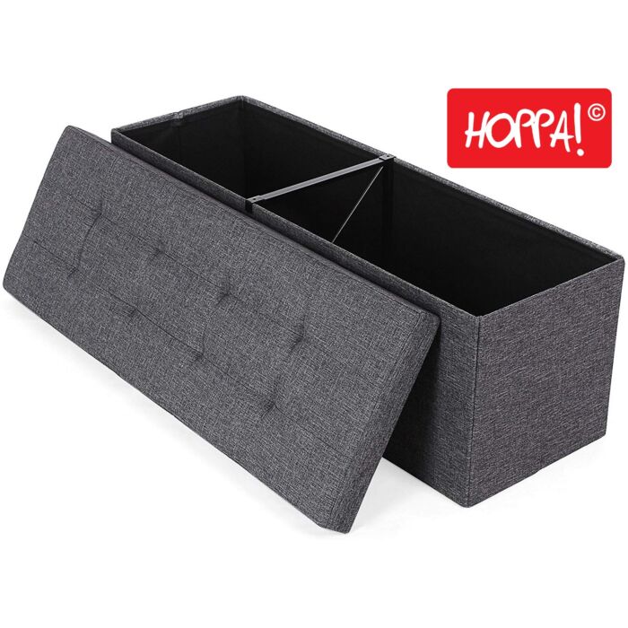 Die Aufbewahrungskiste misst 110 x 38 x 38 cm und besteht aus einer robusten Kombination von MDF und Polyester, die nicht nur funktional, sondern auch stilvoll ist. Die 2,5 cm dicke Schaumstoffpolsterung sorgt für eine angenehme Sitzfläche, während das dunkelgraue Design sich nahtlos in jede Einrichtung einfügt.