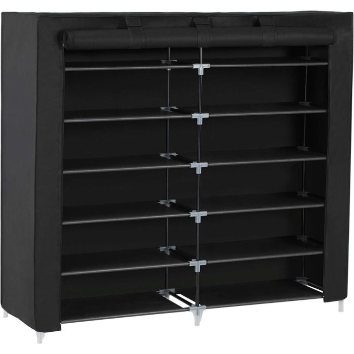 Hoppa! | Schuhregal mit 7 Ablagen mit Staubschutz | Schwarz - Fleece